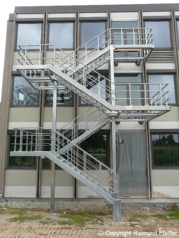 Auch im Außenbereich sind Fluchttreppen und Außentreppen neben Funktionalität auch gestalterisches Element zur Fassadenverschönerung.